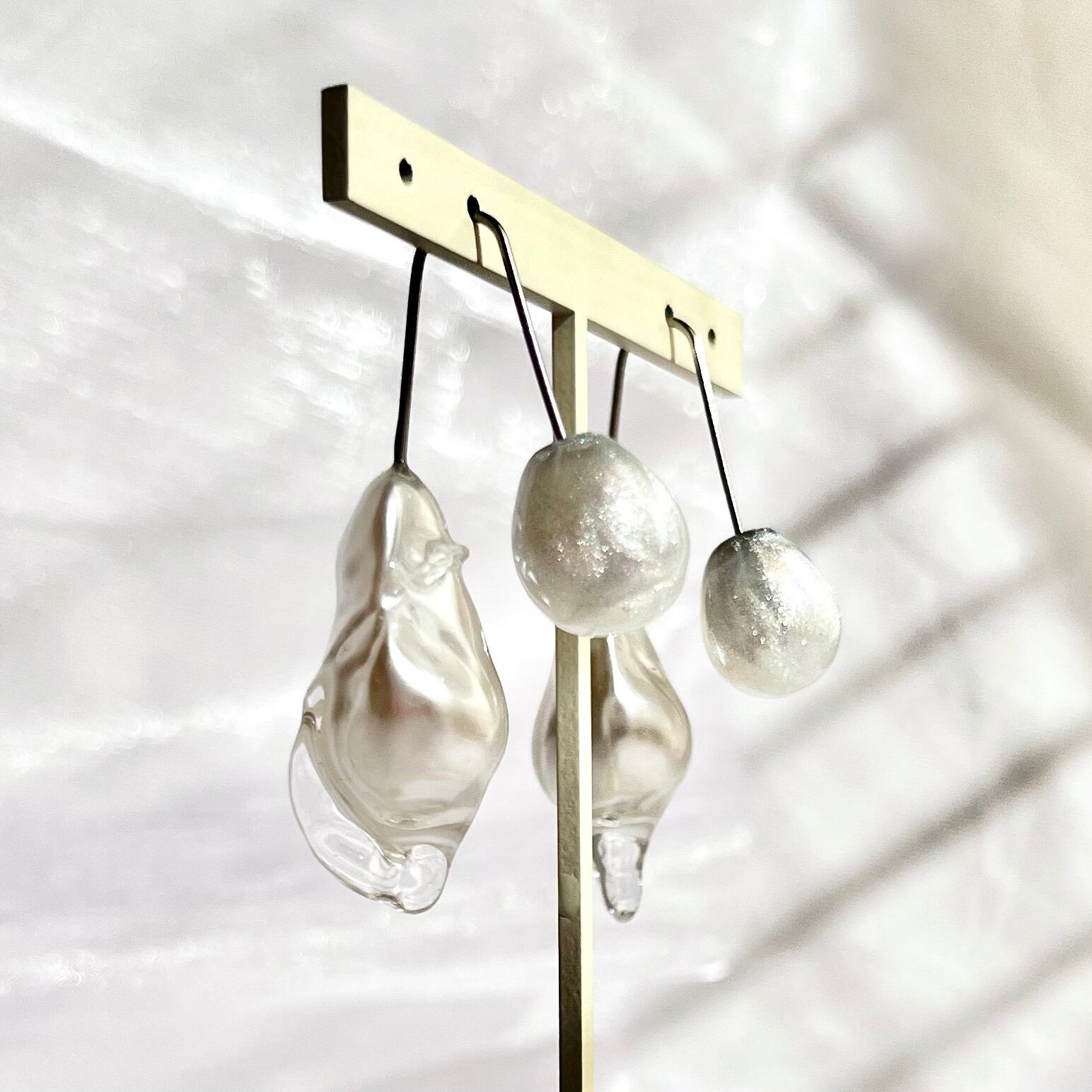 樹脂バロックパールに透明なレジンが輝くデザイン