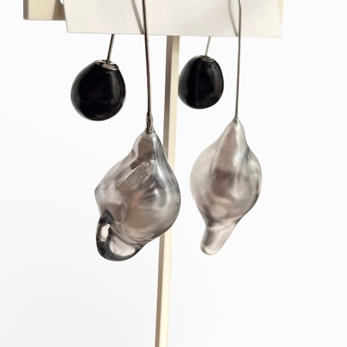 樹脂バロックパールにマーブル模様がクールな印象を引き立てます。